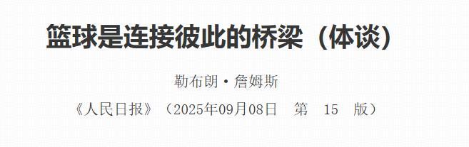北京时间9月8日,湖人队球星詹姆斯结束了为期4天的中国行。《人民日报》刊登了詹姆斯署名的亲笔文章。