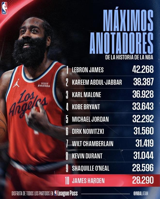 最近网上又把NBA历史得分榜前10翻了出来,詹姆斯高居第一,乔丹、科比、贾巴尔这些名字依然排在最显眼的位置,而杜兰特、哈登还在打球,后面的排名随时可能被改写。这样一份榜单,一边是已经封存的历史,一边是还在增加的新分数,很适合拿来做对比和延展内容。