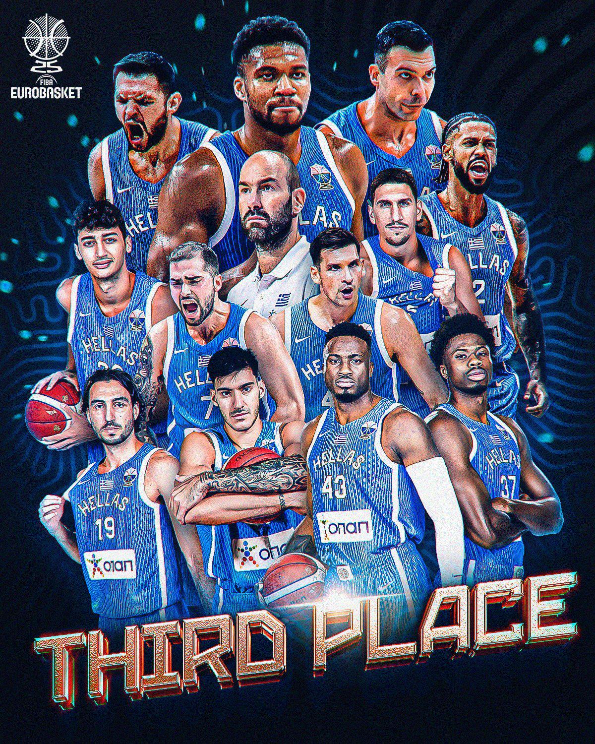 雄鹿官方更新社媒,祝贺字母哥一家和希腊队夺得欧洲杯铜牌