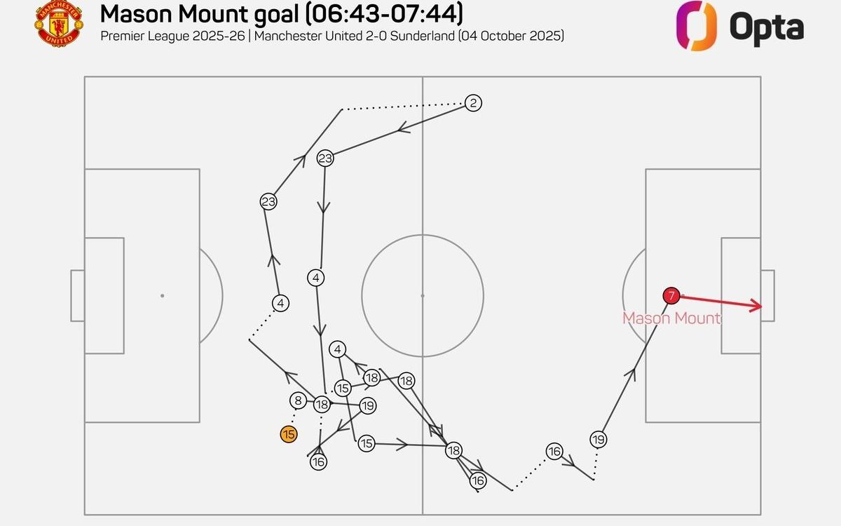 芒特的进球经历连续18次传球,为曼联近两年来英超进球前最长
