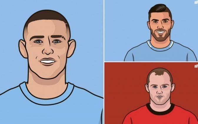 福登英超曼市德比打进7球,仅次于鲁尼的9球和阿圭罗的8球