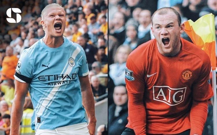哈兰德双响炮!德比6场轰8球,追平鲁尼阿圭罗,再现打坐庆祝