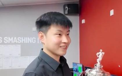 赵心童三杆破百4-0速胜晋级,赛后拿到了复刻版世锦赛奖杯
