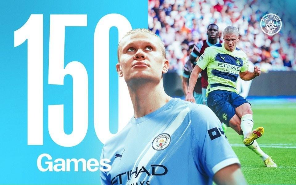 哈兰德达成曼城生涯150场里程碑,一共打入129球