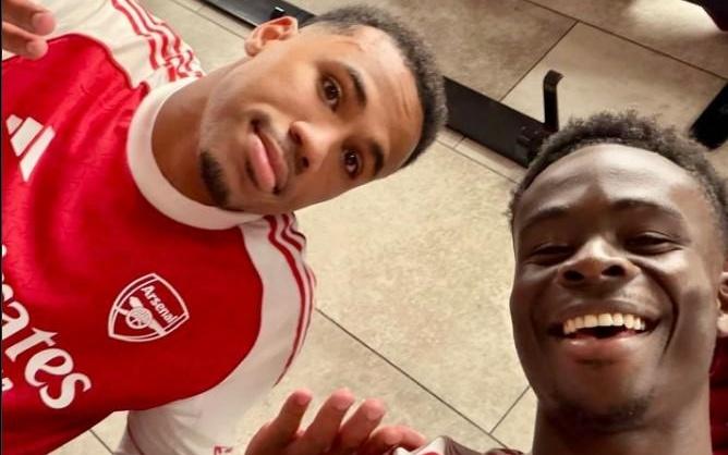 队友太给力,萨卡社媒晒赛后合照,加布里埃尔摊手