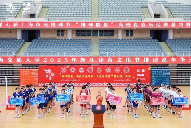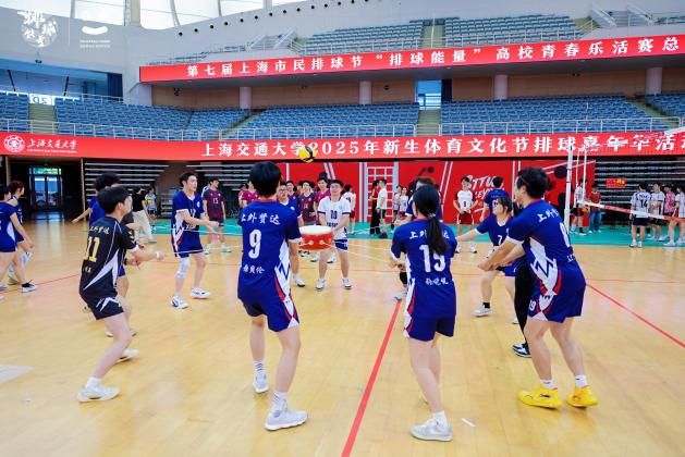 2025年10月8日,第七届上海市民排球节“排球能量”高校青春乐活赛总决赛暨交大新生体育文化节排球嘉年华活动,在上海交通大学霍英东体育中心盛大举行。作为东道主,上海交通大学携手华东师范大学、华东理工大学等沪上八所高校的男女混合排球队齐聚一堂,在市民排球节的舞台上,通过趣味游戏与激烈比赛,共同掀起了一场属于高校青年的青春风暴。