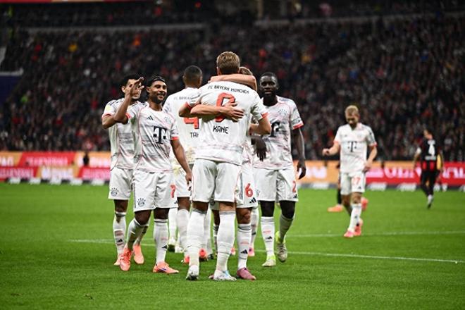 领先之后的拜仁稳稳地掌控着比赛的节奏。第27分钟,基米希在中路直接把球塞给迪亚斯,迪亚斯拿到球后又传给了凯恩,凯恩在禁区外围一脚怒射,皮球直直地飞进了球门右下角,比分变为2 - 0!