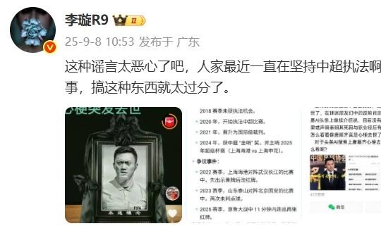 网传中超裁判唐顺齐心梗去世,媒体人李璇辟谣:太恶心了吧