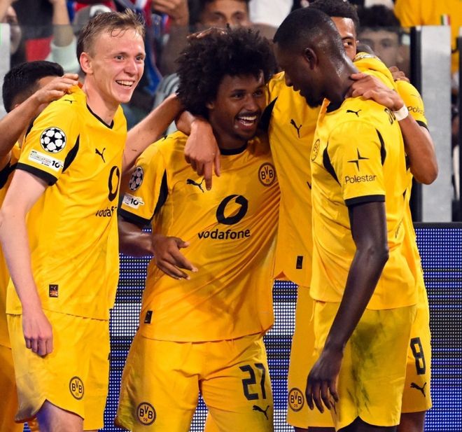 这组对决可谓是这一夜最跌宕起伏的一场;2队上半场毫无建树,甚至场面有些无聊;下半场却风云突变。第52分钟,阿德耶米突破轰贴地斩直窜死角;第63分钟,伊尔迪兹兜世界波直挂死角;第65分钟,恩梅加回敬一脚世界波;2分钟后,伊尔迪兹又助攻弗拉霍维奇单刀破门。第74分钟,扬-科托前场断球后低射破门,多特3-2再度领先!第86分钟,本塞拜尼操刀命中点球,4:2!