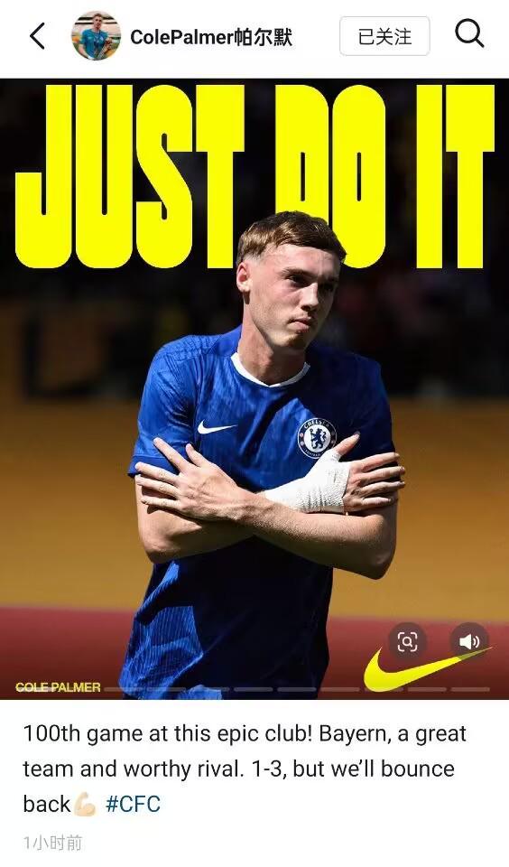 雷速体育9月18日宣 在今天凌晨结束的欧冠联赛阶段第1轮的比赛中,切尔西客场1-3不敌拜仁。赛后切尔西球星帕尔默在社媒发布了对本场比赛的想法。