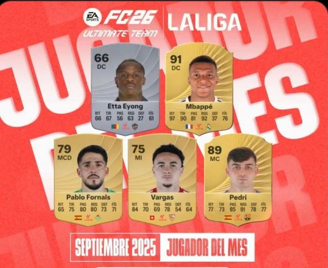 直播吧9月24日宣 西甲官方评选出9月份最佳球员候选名单,其中姆巴佩、佩德里领衔,具体如下: