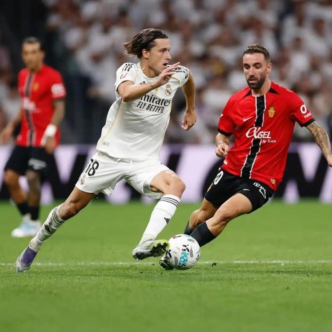 2003年3月出生的A费只有22岁,足球生涯起步于拉科鲁尼亚青训的他在2017年转投皇马青训,并在2020年夏天免费加盟曼联U23,。2022年夏天,A费成功升入曼联一线队,但只入选过5次球队大名单,没有捞到1分钟出场机会。之后,A费先后被租借到普雷斯顿、格拉纳达和本菲卡等球队效力,并在2024年7月被本菲卡以1430万欧元正式买断。而在这个夏天,A费一飞冲天,被皇马以5000万欧元重新带回伯纳乌,成为了世界第一豪门的主力左后卫。生活,就是这么神奇。