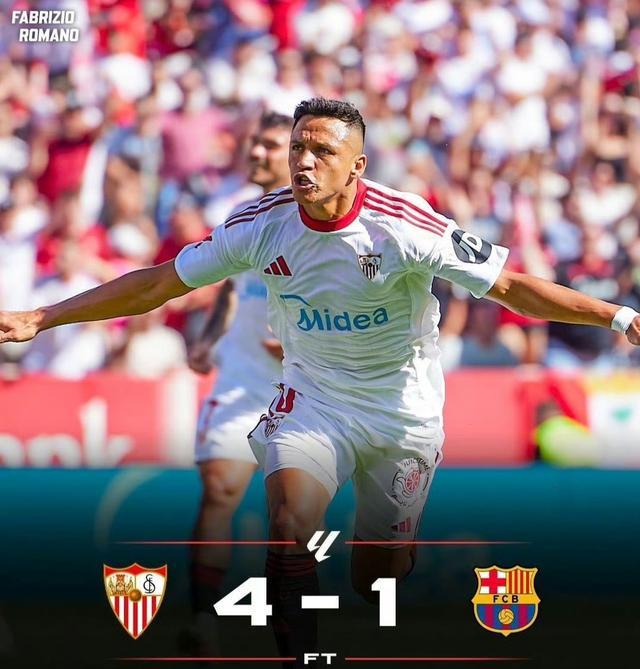 当终场哨声响起,4-1的比分牌刺痛了所有巴萨球迷的双眼,塞维利亚用一场酣畅淋漓的胜利终结了对巴萨十年不胜的尴尬,36岁巴萨旧将桑切斯破门弑旧主,成为这场大比分惨案的点睛之笔!