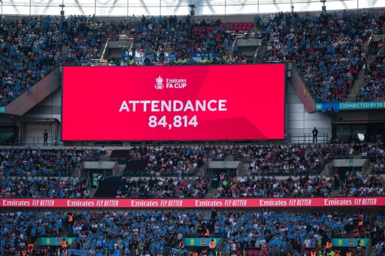 就在前一日,足总杯决赛曼市德比也在温布利球场进行,到场观战的人数为84814人。