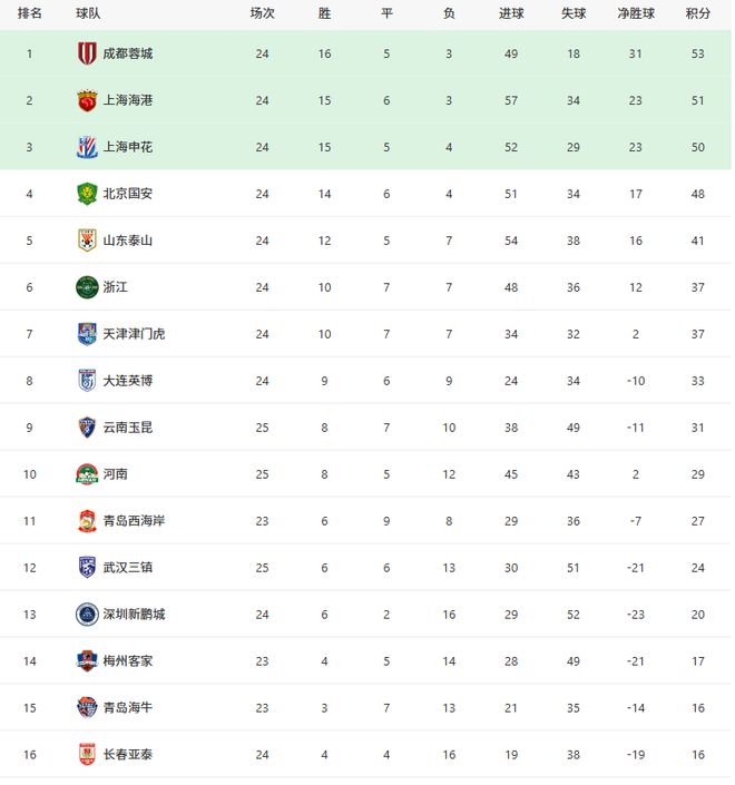 而争冠集团方面,北京国安队本轮比赛,只要不赢海港队,那么,他们将直接退出争冠行列!中超冠军的争夺,将变成蓉城队、海港队以及申花队三足鼎立的局面。